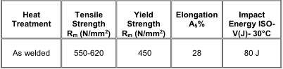 металл шва сохраняет высокие показатели ударной вязкости до −40 °C.