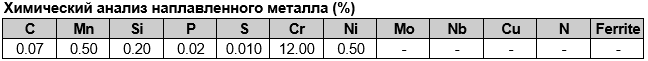 Классификация: AWS A5.4 : E 410-15 ISO EN 1600: E 13 B 32